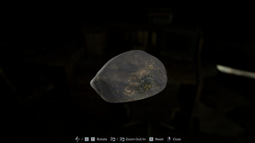The blue beret worn by Jill Valentine is also present as a collectible reference inside the office.