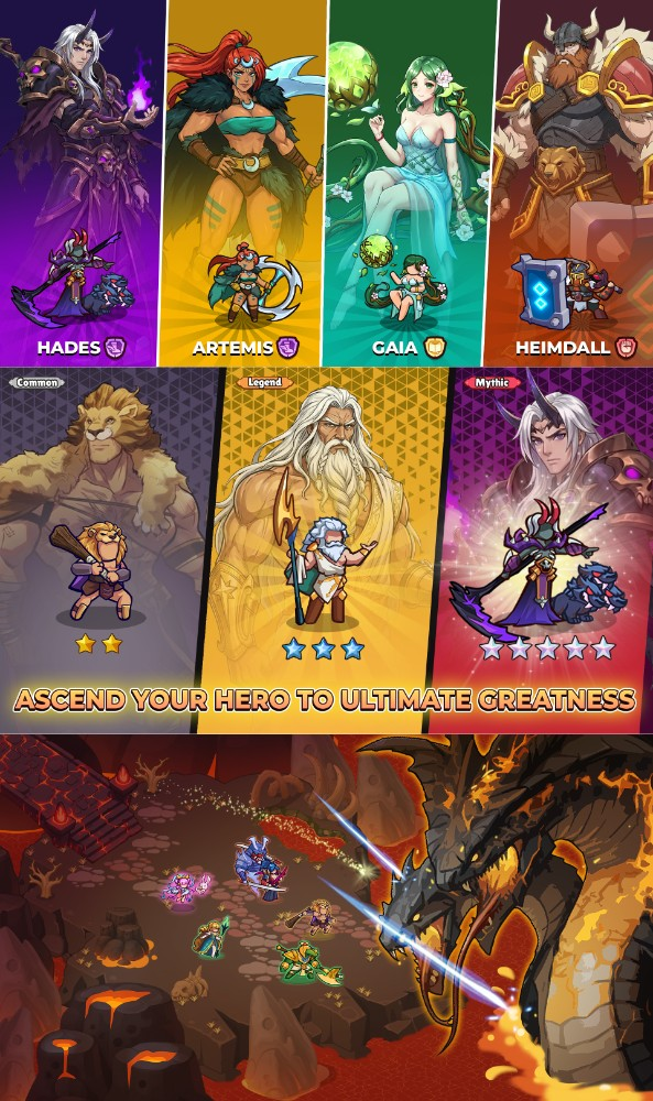 Heavenfall Arena is a mobile Idle RPG that drops you into a sacred battlefield filled with wars between gods. You will collect and assemble teams of legendary heroes from various classes, whether they are Warriors, Mages, Guardians, or Assassins. Each character is blessed with entirely unique skills. Your primary duty is to combine combos and strategize to conquer campaign stages, ancient towers, and cursed lands.