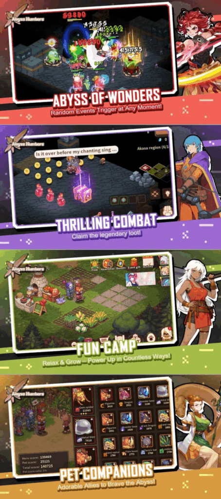Abyss Hunters combines endless strategic freedom with beautiful HD-2D pixel graphics, offering both intense roguelike battles and a relaxing town simulation for mobile players.