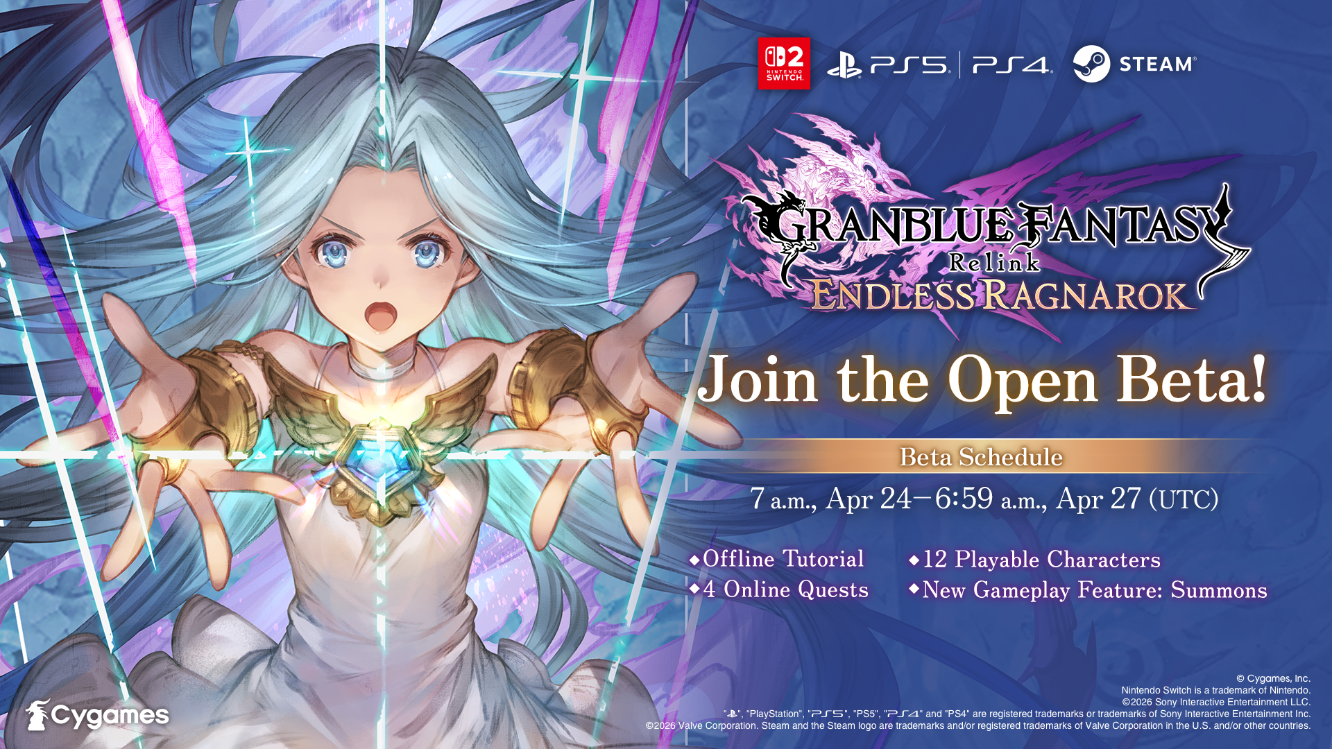 Video game publisher and developer Cygames, Inc. (HQ: Shibuya, Tokyo; President: Koichi Watanabe; hereinafter referred to as “Cygames”) has announced an official open beta test for the upcoming action RPG Granblue Fantasy: Relink – Endless Ragnarok (hereinafter referred to as Endless Ragnarok). The game is set to release on July 9, 2026 for Nintendo Switch™ 2, PlayStation®5, PlayStation®4, and Steam®.