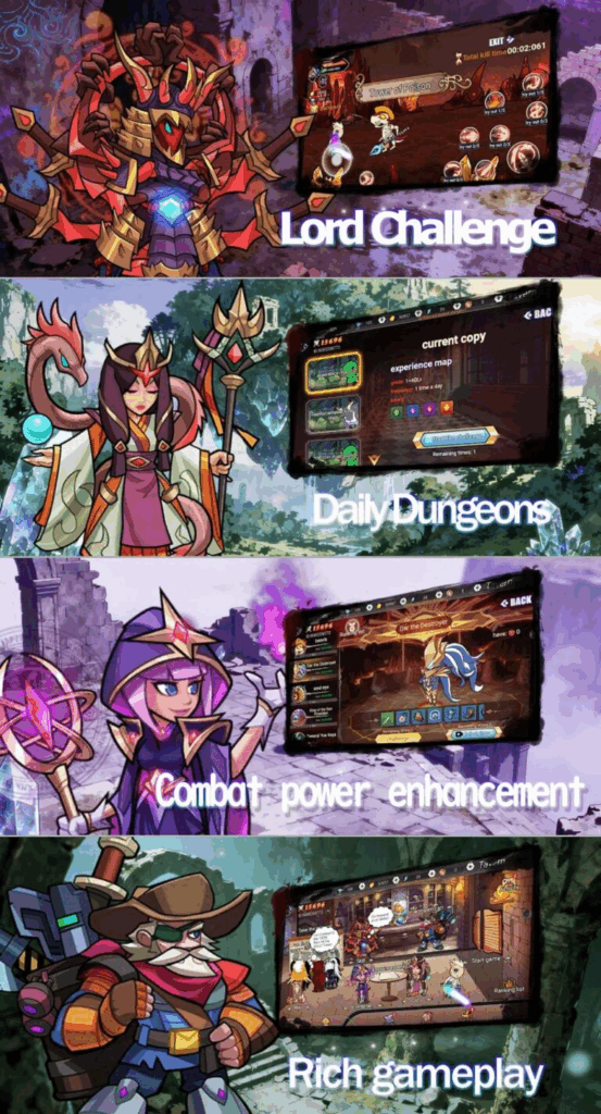 In addition to dungeon combat, players can test their skills through tower climbing modes, where each floor introduces stronger enemies and increasingly brutal boss encounters. Every step upward represents a new trial of strength and a chance to unlock greater honor as a true warrior of Asgard.