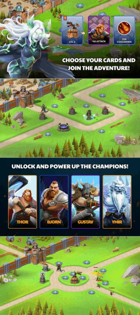 • Defend a Norse Mythology-themed base: Experience the atmosphere of the Great Battle of the Gods.