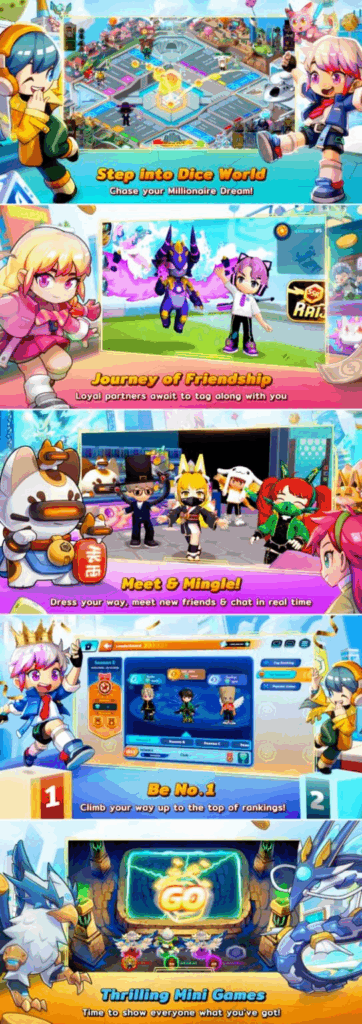 - Dice Square: The game’s Community Hall A place to meet and invite friends to play.