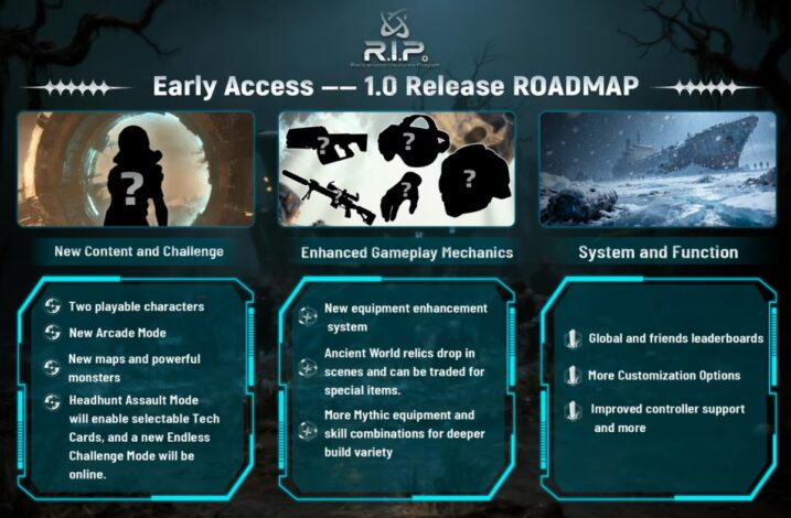 R.I.P. – Reincarnation Insurance Program is now available on Steam Early Access. The development roadmap includes two new characters, additional maps, new enemy types, and expanded equipment tiers with unique mechanics. The game will also feature a global leaderboard and improved controller support, enhancing both competition and accessibility.