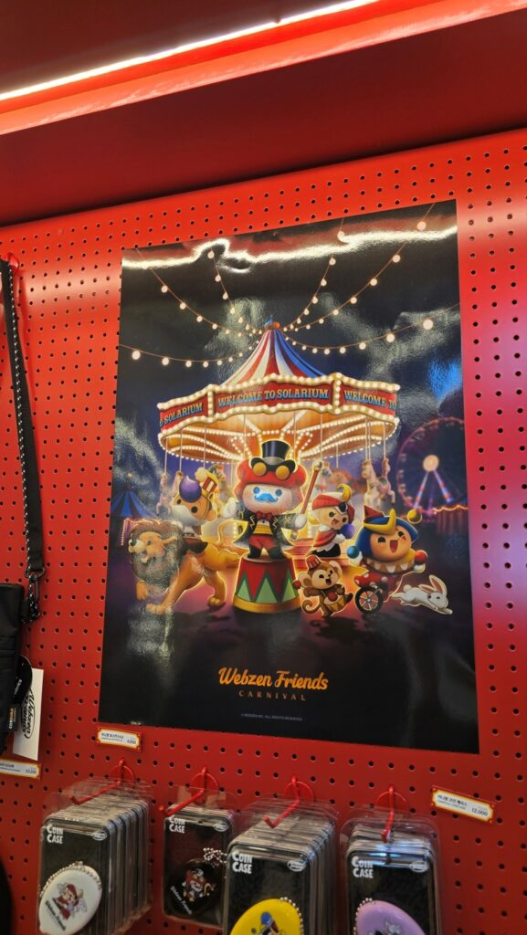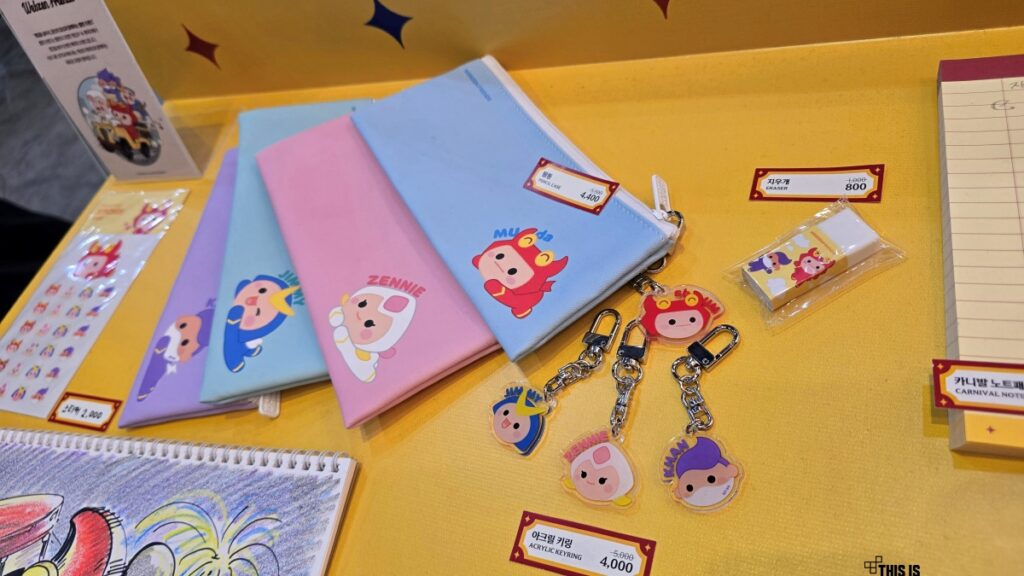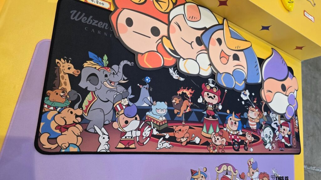 The merchandise corner became one of the busiest areas throughout the event. Fans browsed pastel stationery sets, cold drink tumblers, mousepads, travel tags, tote bags, luggage accessories, and even an exclusive set of custom printed T shirts produced live at the event. The handcrafted feeling of the custom shirts added a special appeal as many attendees wanted to bring home something memorable that represented the Carnival theme and the Webzen Friends universe. Every display was designed to highlight creativity and authenticity which made the booth feel like a pop culture boutique.
