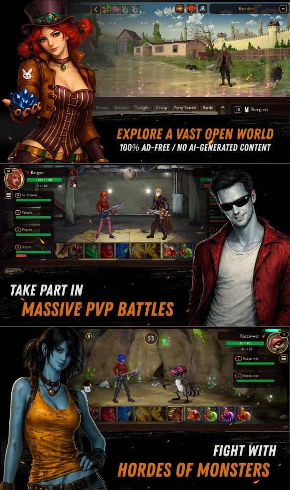 The game stands out with its handcrafted 2D environments, featuring over 300 unique areas designed without the use of AI. Each location feels carefully built to enhance immersion and exploration, giving players a nostalgic yet polished MMORPG experience.