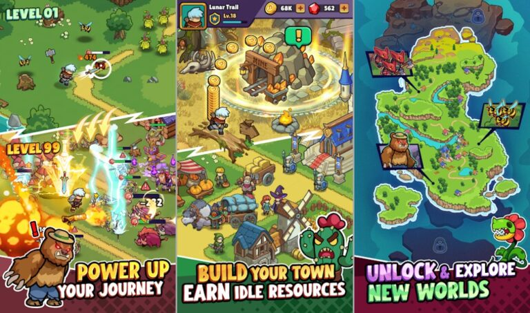 Backpack Legends also includes a Town Building and Idle system, allowing players to restore villages, construct facilities, and generate resources over time. Even while offline, towns continue to produce gold and valuable materials, ensuring steady progression without constant play.