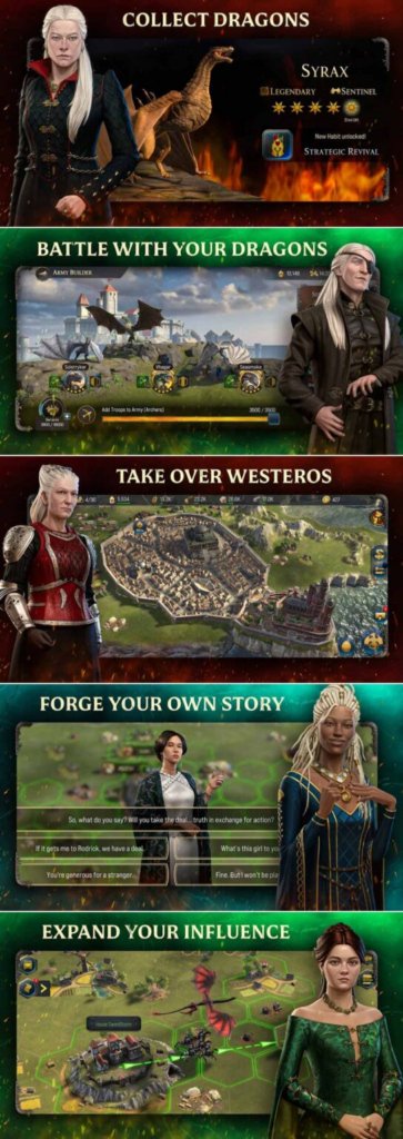 At its core, the game delivers a strategic RPG experience centered around the iconic Targaryen dragons. Players will collect, raise, and train legendary creatures, each equipped with unique abilities capable of turning the tide of battle. These dragons are not just companions, but powerful assets that define your strategy and determine your path to victory.