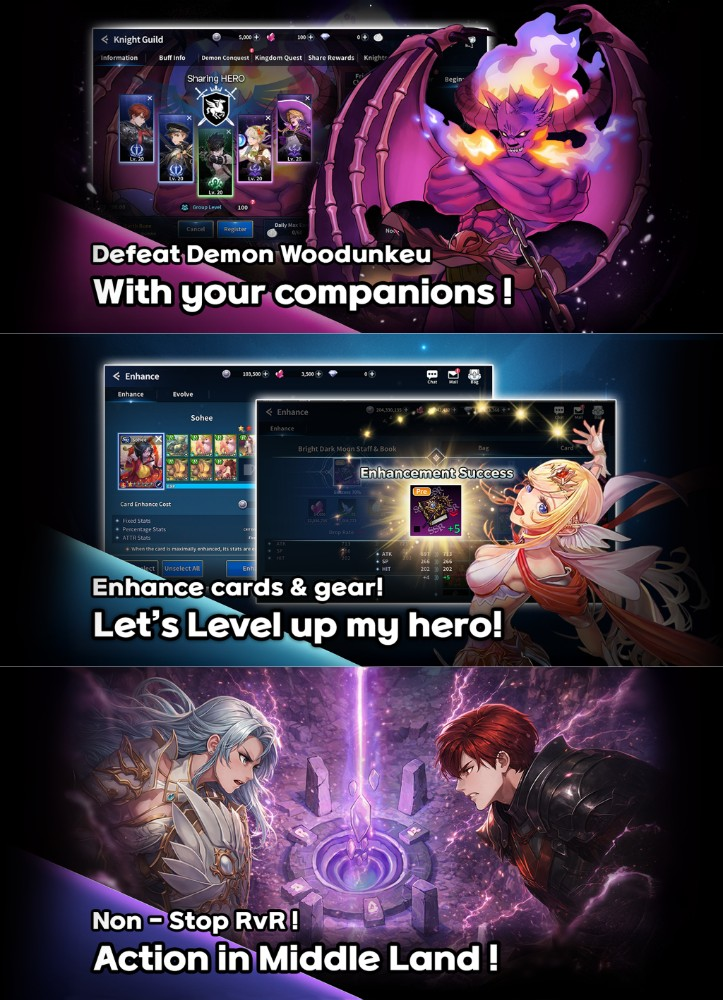 - Epic Ragnarok Battles: Dive into epic combat within the Ragnarok universe, developing your knight’s strength through battles and careful strategy.