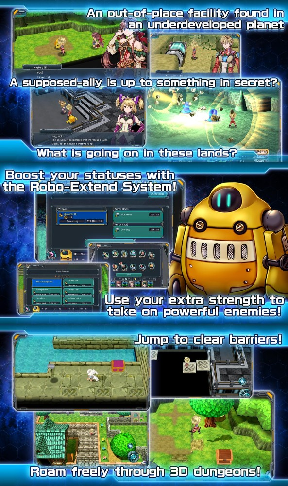 The story of RPG Dimension Cross begins when a state-of-the-art spaceship is launched to expand humanity’s reach into the universe. However, the ship unexpectedly crash-lands on a strange planet where the crew, led by Kyle, discovers ancient structures far beyond the planet’s current technological level. To make matters worse, the local population has been kidnapped, and it seems that some trusted crew members are secretly planning something sinister.