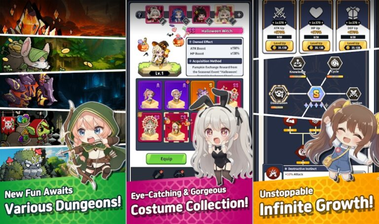 • Idle Growth: Characters grow even when the game isn’t actively played.