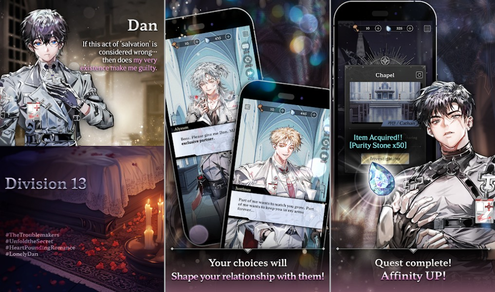 Players take on the role of Dan Tae-eun (Dan), the only male exorcist branded a sinner and exiled to Zone 13, a dangerous area filled with skilled exorcists. Your mission is to save these handsome exorcists from the encroaching darkness using intimate “purification” methods that build closeness and trust.