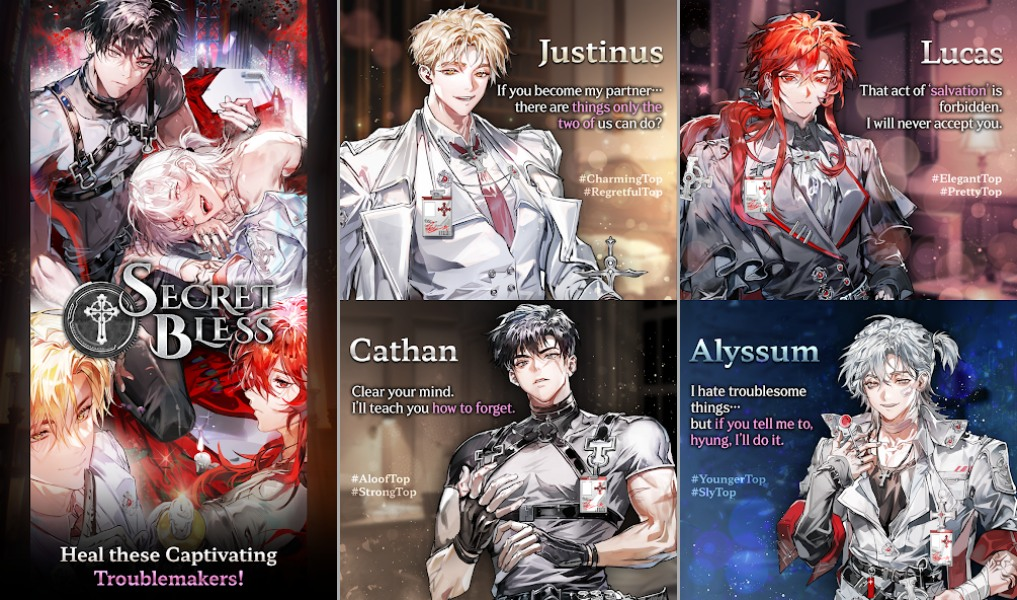 THIS IS OUR SAY: Secret Bless: Fantasy BL delivers a thrilling adult Visual Novel experience with a dark fantasy storyline and handsome exorcists, combining intense drama and steamy romance.