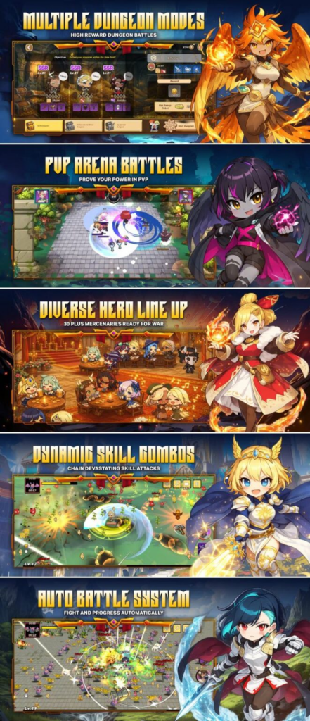 • Idle Mechanics: Enjoy automatic gameplay (AFK) while your mercenaries continue to battle and farm for resources in your absence.