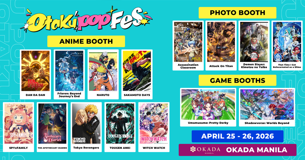 With fan-favorite series represented across booth activations and photo areas, Otaku Pop Fes 2026 is set to deliver a vibrant and community-driven experience for anime and pop culture audiences at Okada Manila, on April 25 and 26, 2026.