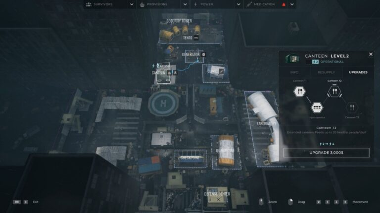 Beyond inspections, the game introduces light base management elements. Players must manage essential resources such as food, medicine, and fuel to keep the camp functioning.