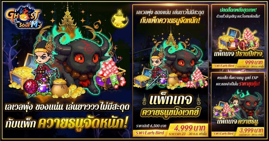 To celebrate the test, Ghost Soul M is offering special pre-sale packages limited to Thai servers. Players can grab the rare UR Buffalo mount, an exclusive mythical pet available only in Thailand. This powerful creature boosts combat stats massively — just summoning it increases your battle power significantly.