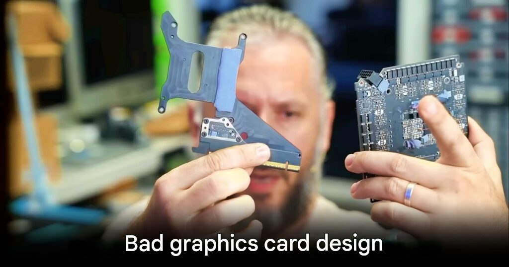 The core issue lies in the card’s highly unusual internal layout. NVIDIA uses a relatively small Printed Circuit Board (PCB) for the main components. This PCB sits in the center of the massive heatsink assembly. This short board design forces the PCIe interface to take an unusual route. The PCIe connector, which plugs into the motherboard, is not part of the main PCB. It is instead a separate component.