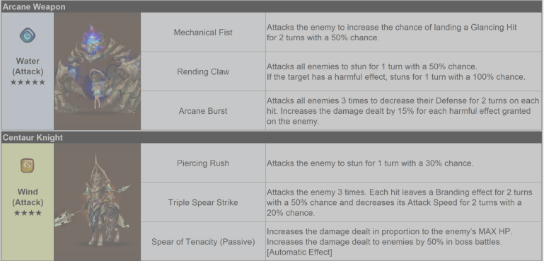 The Arcane Weapon is a powerful 5-star monster. It is a formidable mechanical weapon. It is designed to crush enemies with its massive limbs and overwhelming skills. Key skills include “Mechanical Fist” and “Rending Claw.” These abilities signify its destructive potential on the battlefield. The Water element version of the Arcane Weapon is available through the Fusion system.