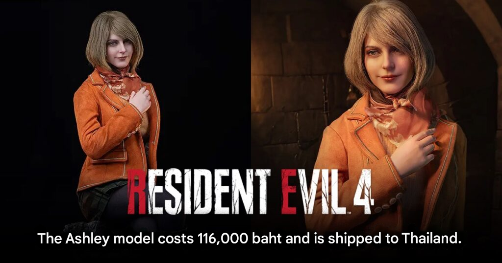 The model stands approximately 84 centimeters tall and 37 centimeters wide, constructed using high-quality silicone materials. The outfit is made from real fabric, carefully tailored to resemble Ashley’s in-game attire, including her coat, scarf, and skirt. Every element has been crafted with close attention to detail to give the impression that the character has stepped directly out of the game world.