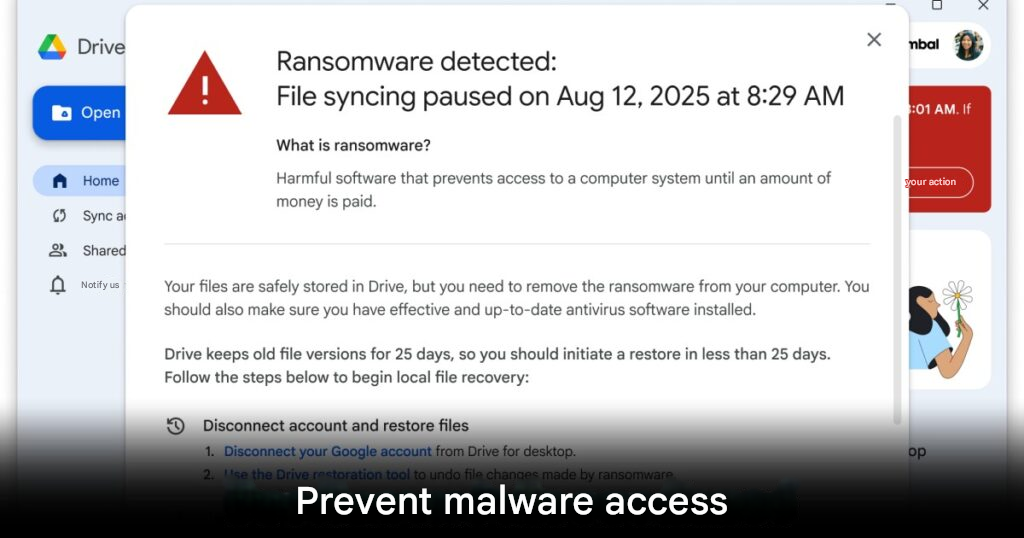 The new AI-powered ransomware detection system is up to 14 times more effective at identifying potential ransomware threats compared to previous versions. Once a suspicious file is detected, Google Drive will automatically stop synchronization between devices to prevent the infected file from spreading. Users will receive a clear warning, both on-screen and via email, alerting them to the presence of the malicious file.