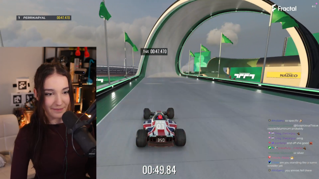 The experiment was first applied to Trackmania, a fast-paced racing title. As the car drifted through corners, PerriKaryal reported feeling strong G-forces similar to real driving. Her body tilted naturally with each sharp turn, creating the illusion that she was truly sitting behind the wheel.