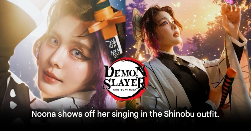• The Look: Noona flawlessly captured Shinobu’s iconic look, complete with the butterfly-patterned haori, the intricate hair clip, and the distinct purple gradient of the character’s hairstyle.