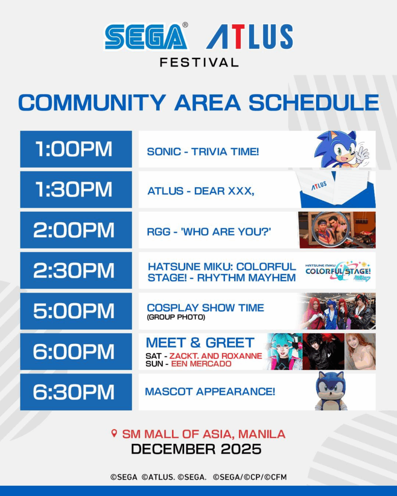 This weekend, SM MOA transforms into a massive playground for all things SEGA and ATLUS — with hands-on demos, contests, giveaways, cosplay showcases, and surprises waiting around every corner. So gather your party, plan your route, and get ready to celebrate the worlds and characters you love!