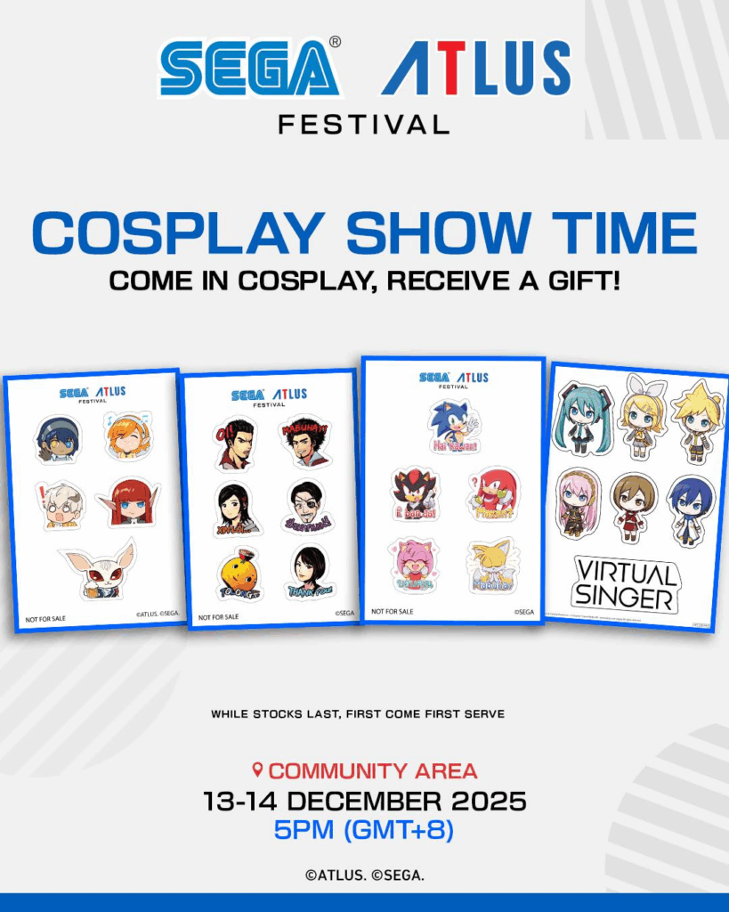 📸 A massive cosplay group photo will also be taken, so don’t miss your chance to be part of SEGA ATLUS history.