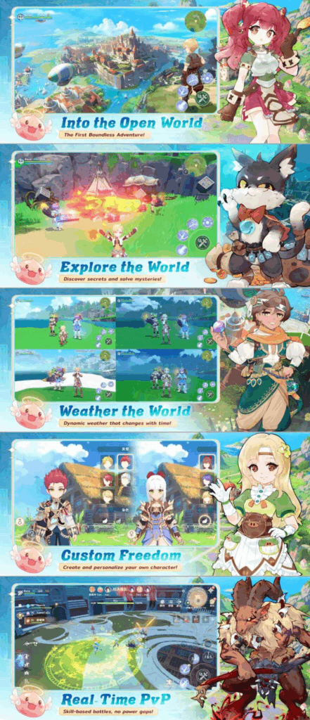 Players will travel through vast fields and iconic fantasy towns while the environment shifts dynamically through a real time weather system where rain, snow, and sandstorms affect exploration and gameplay. The game encourages fast paced combat focused on action without long casting times or slow skill animations. Each battle feels responsive and energetic, making grinding and progression exciting rather than repetitive. Ragnarok Abyss also offers deep character creation with customizable hairstyles, skin tones, and advanced dye systems, giving players freedom to design a completely unique hero.