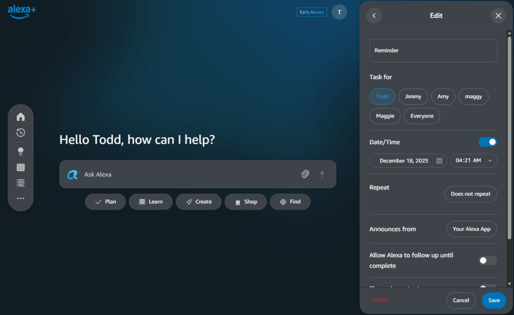 Currently, the Alexa.com portal is available to a subset of users in the Alexa+ Early Access program. Access is expected to expand globally in the coming weeks.